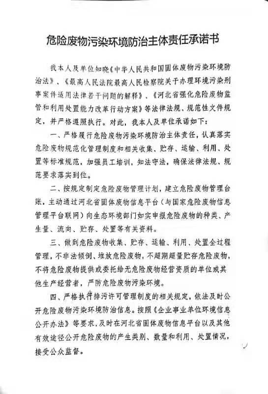 首頁 > 新聞資訊 > 公告中心 > 危險廢物污染環(huán)境防治主體責任承諾書