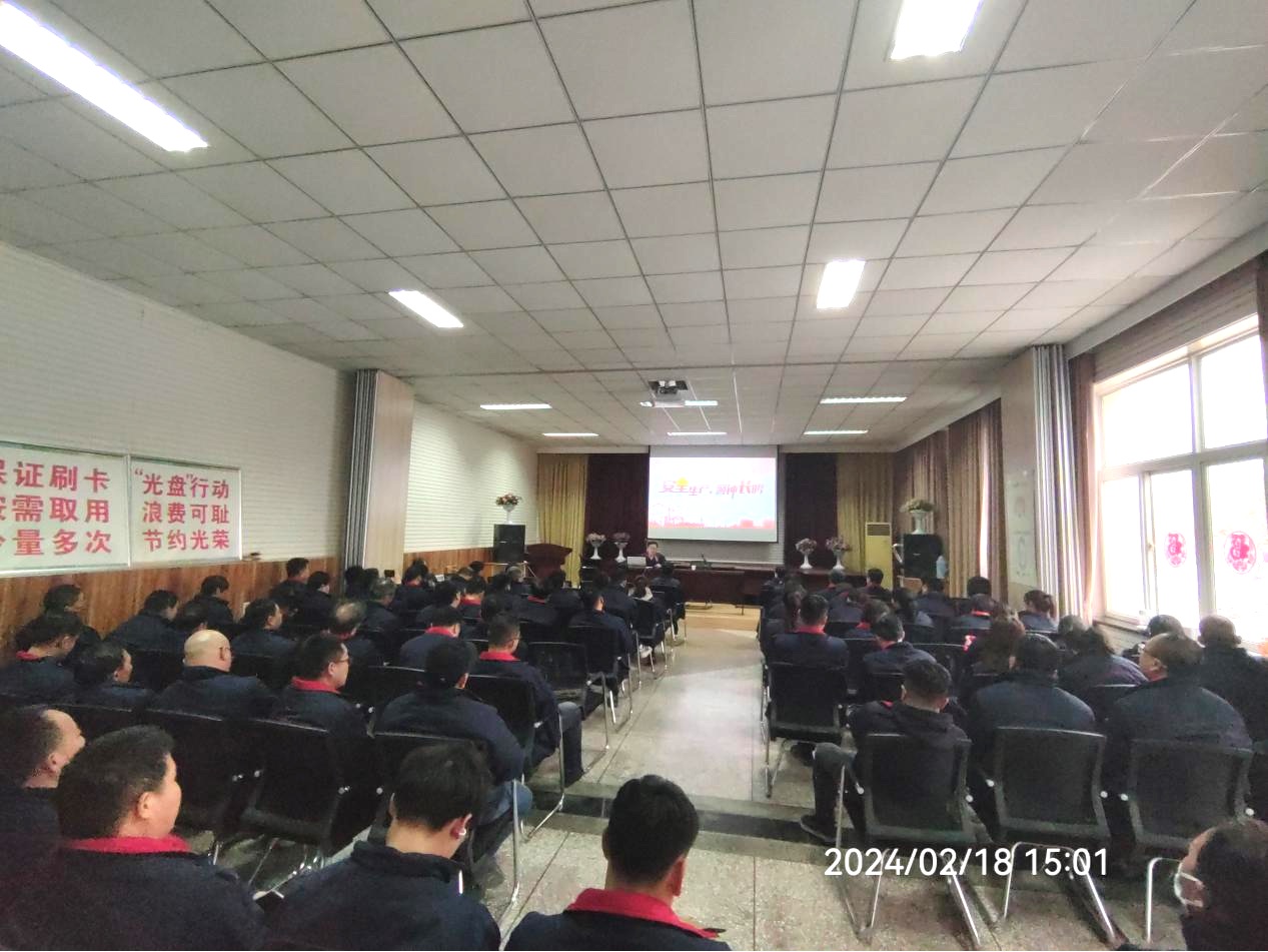 時(shí)間:2024-02-20 作者:2月18日,春節(jié)后上班第一天,公司召開復(fù)工復(fù)產(chǎn)“開工第一課”安全培訓(xùn)會(huì)議,吹響復(fù)工復(fù)產(chǎn)安全生產(chǎn)“動(dòng)員令”。會(huì)議由公司副總經(jīng)理李俊主持,總經(jīng)理?xiàng)钌吵鱿⒅v話,公司全體干部職工共計(jì)110余人參加。