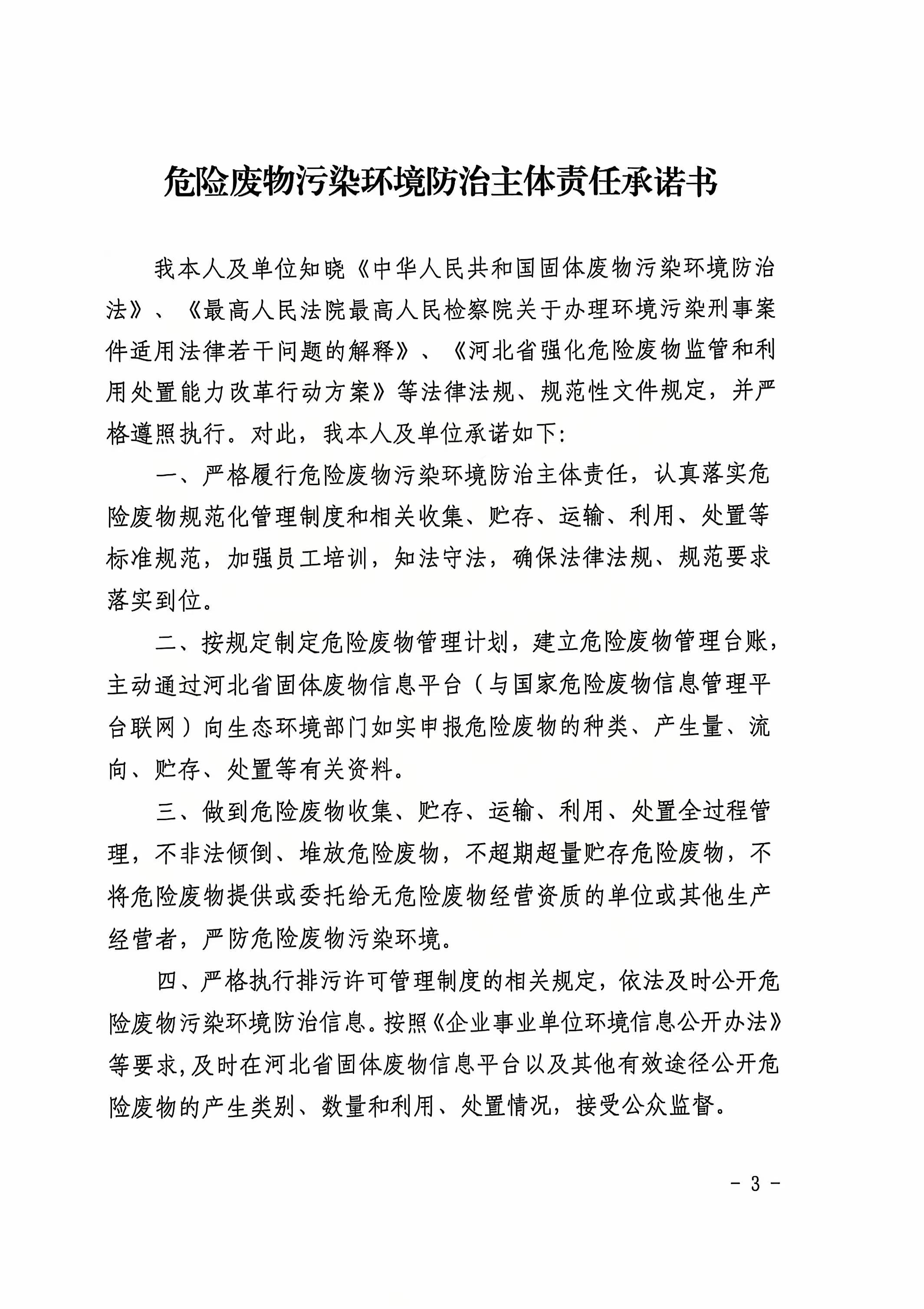 首頁 > 新聞資訊 > 公告中心 > 危險廢物污染環(huán)境防治主體責任承諾書