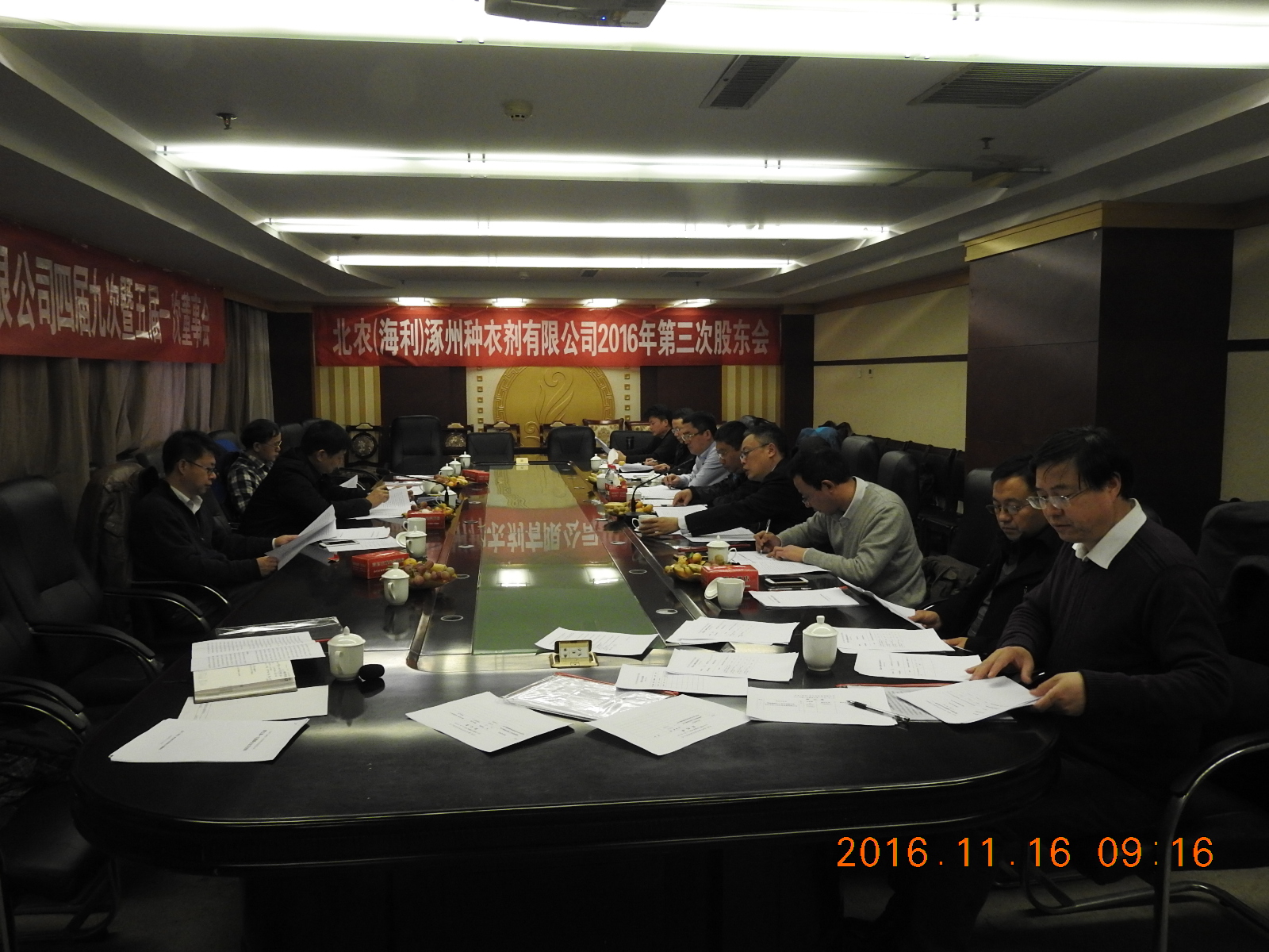 北農(nóng)(海利)涿州種衣劑有限公司四屆九次暨五屆一次董事會于2016年11月16日上午在河北省涿州市匯元酒店召開。湖南海利高新技術(shù)企業(yè)集團公司黨委龔小波書記、北京中農(nóng)大地科技發(fā)展有限公司張文立董事長、張永生總經(jīng)理等領(lǐng)導參加了會議。會議按照《公司法》和《公司章程》產(chǎn)生了第五屆董事會、監(jiān)事會和經(jīng)營班子成員。名單如下: